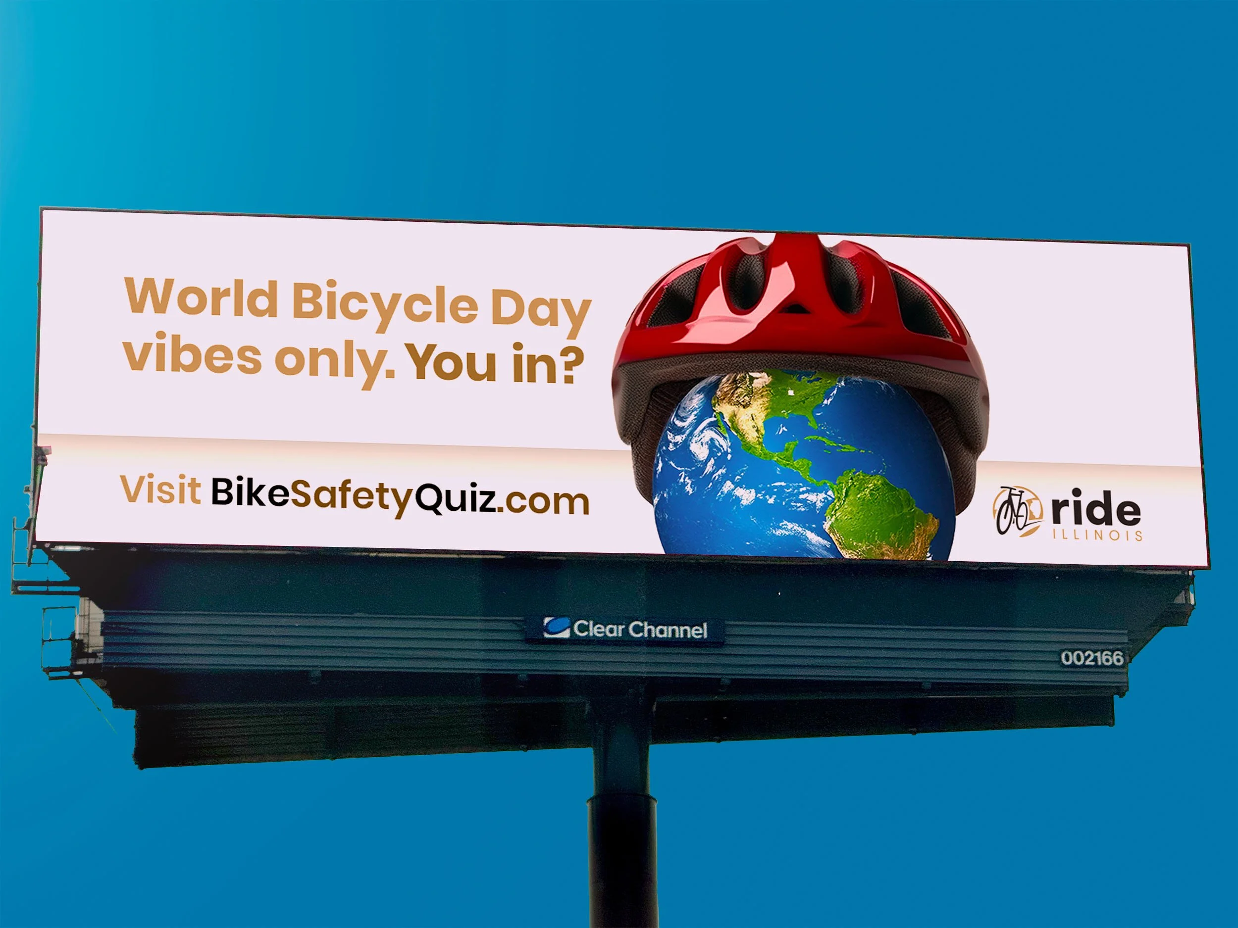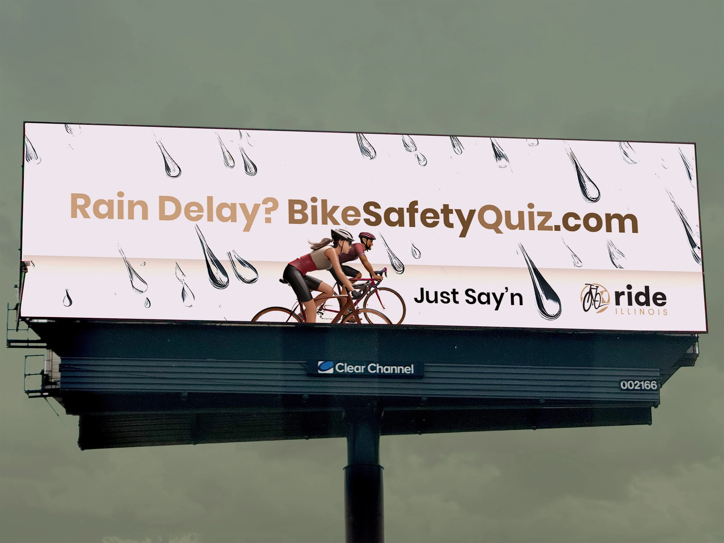 Given the medium of digital billboards the messages changed to meet more relevant timing of World Bicycle Day - shown May 31-June 8, | while “Rain Delay” ran during days with a 50% or greater chance of rain in Oak Park, IL
